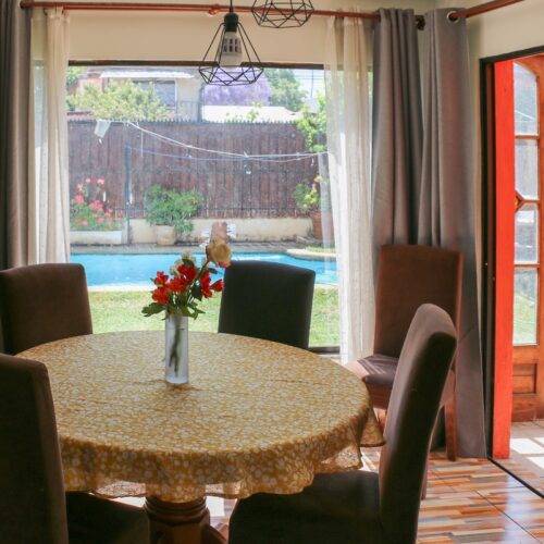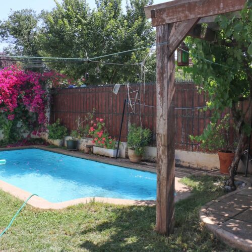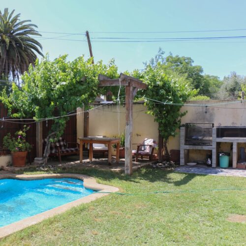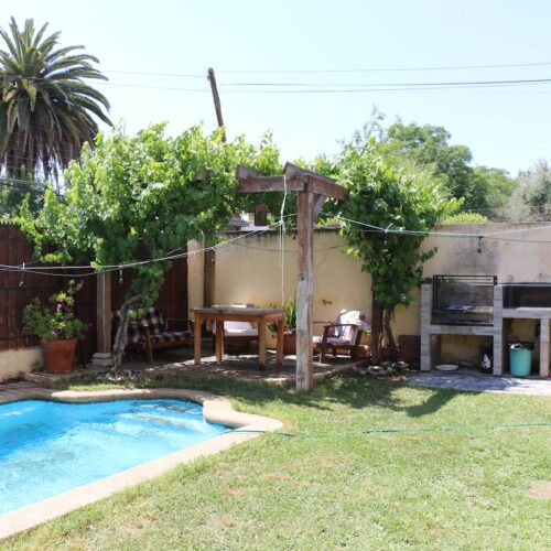 La casa cuenta con un gran patio con piscina y quincho, además de una terraza cerrada.