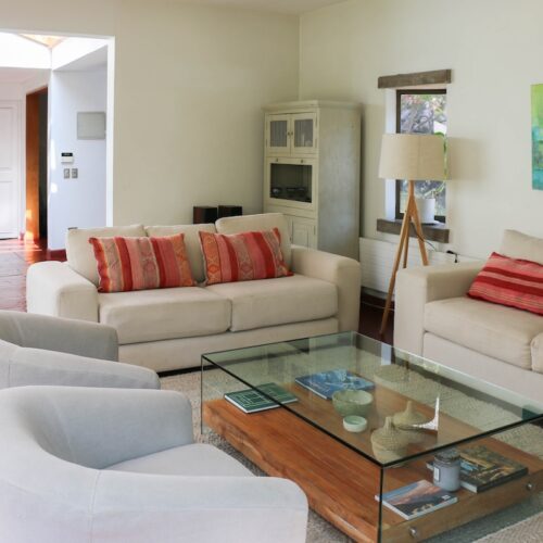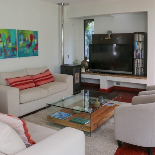 Casa de 234 m2 construidos en un terreno de 816 m2. Esta casa destaca por la gran iluminación natural que reciben todos sus espacios y por la amplitud y belleza de su jardín, de árboles crecidos y consolidados.