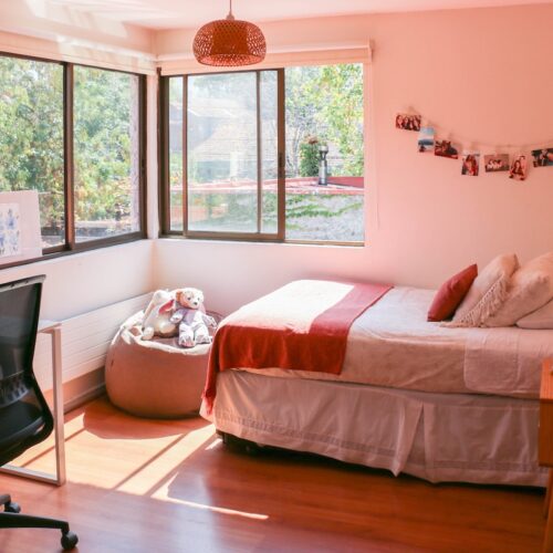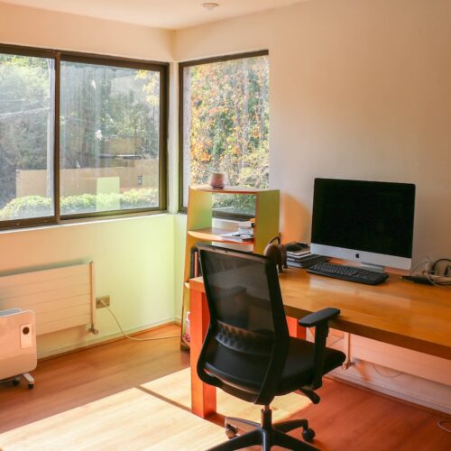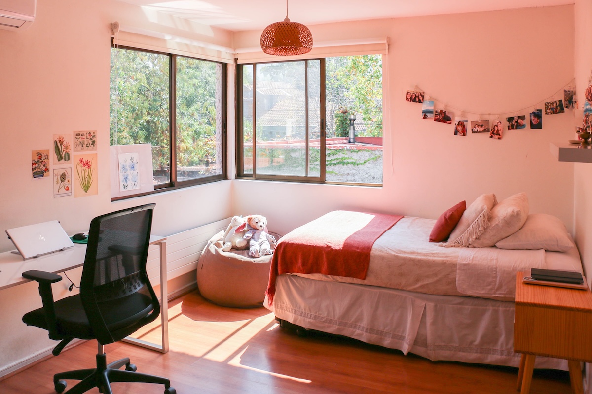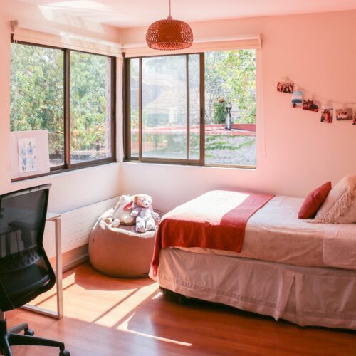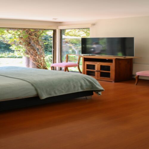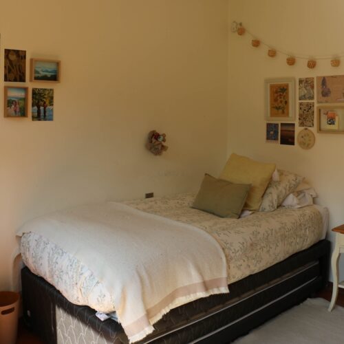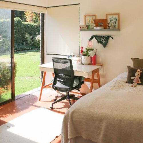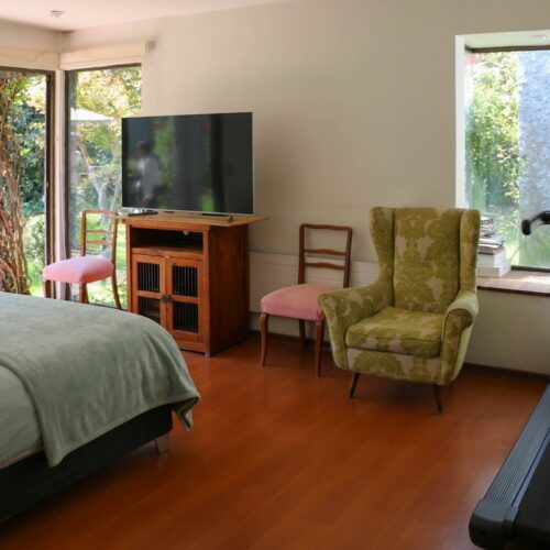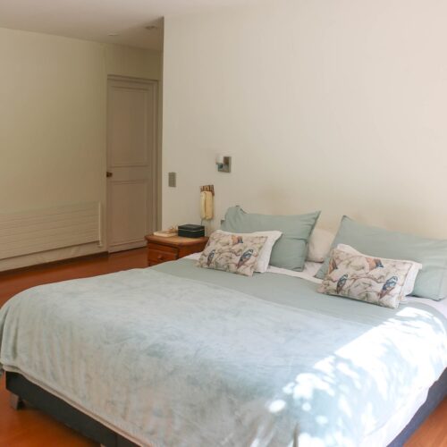 También encontramos 2 dormitorios más, con hermosa vista del jardín y 2 baños completos, además de un espacio intermedio entre ambas habitaciones, que sirve como salita de estar o escritorio.