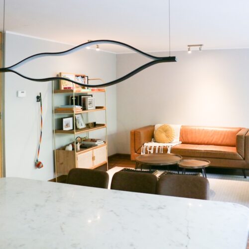 Hacia el otro lado encontramos el pasillo que nos lleva hacia una cómoda salida de estar, con salida a la terraza, un baño completo con tina y los 3 dormitorios.