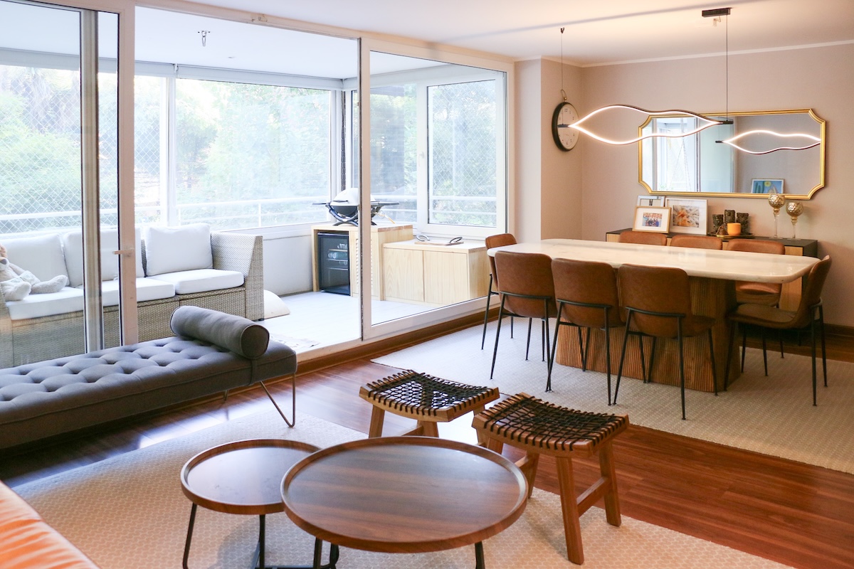 Tras una puerta vidriada se encuentra el living comedor, luminoso y grande, con salida a una larga terraza.
