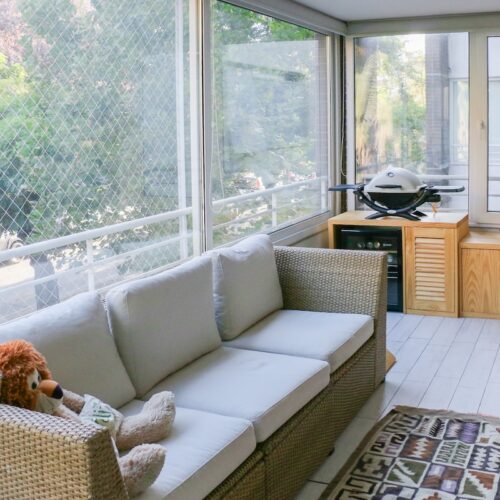 Las dos terrazas están completamente cerradas con ventanas de termopanel, que hacen del depto un espacio libre de ruido y muy fácil de temperar tanto en invierno como en verano.