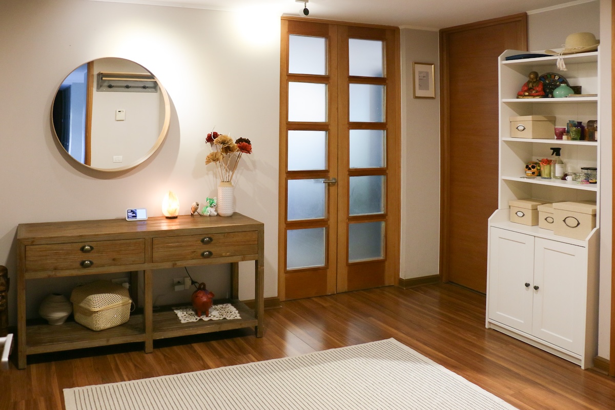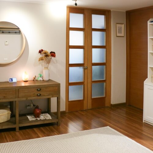El departamento, de finas terminaciones, nos da la bienvenida con amplio hall de entrada o hall de distribución, en el que encontramos un baño de visitas.