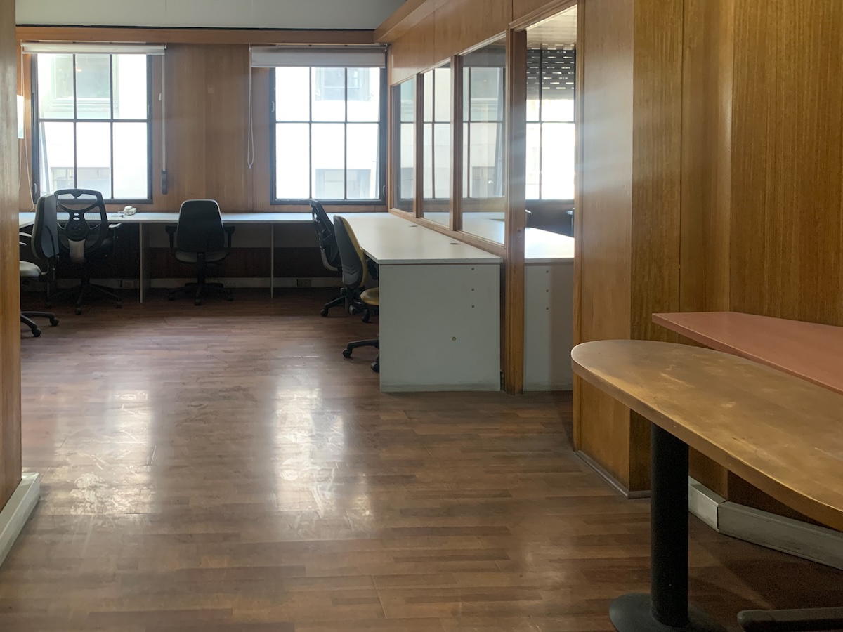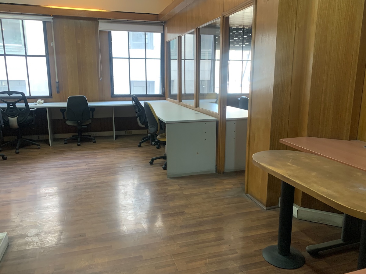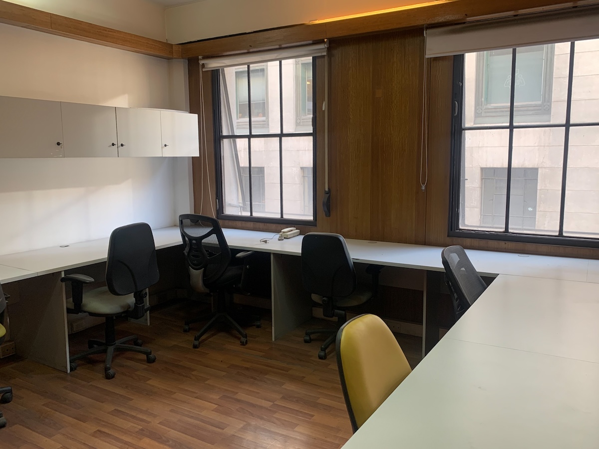 Luego entramos a la sala principal, muy luminosa y espaciosa, equipada con escritorios a la redonda, sillas, y algunos muebles para guardar cosas.